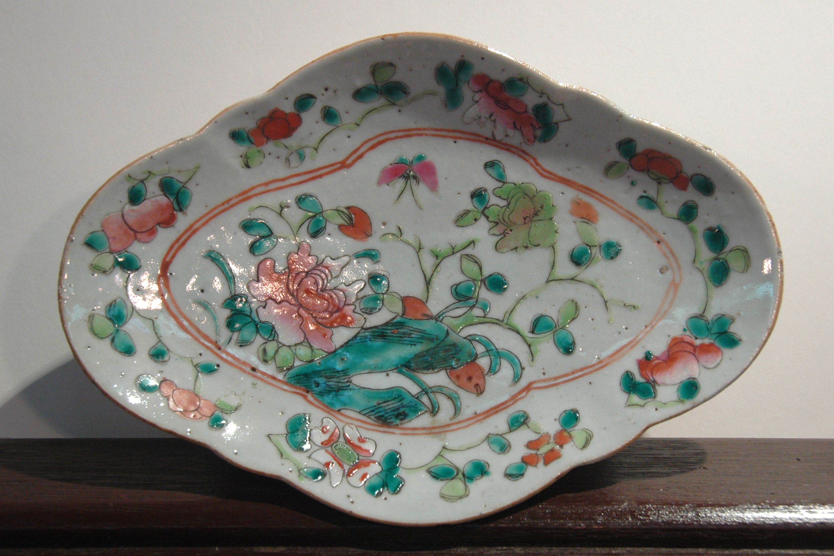 This is a Four Season Floral Plate use specifically for presenting poultry dishes (roast duck in particular).  The four season flowers are: Narcissus, Lotus, Chrysanthemum, Plum Blossom; they represented good fortune for every season.