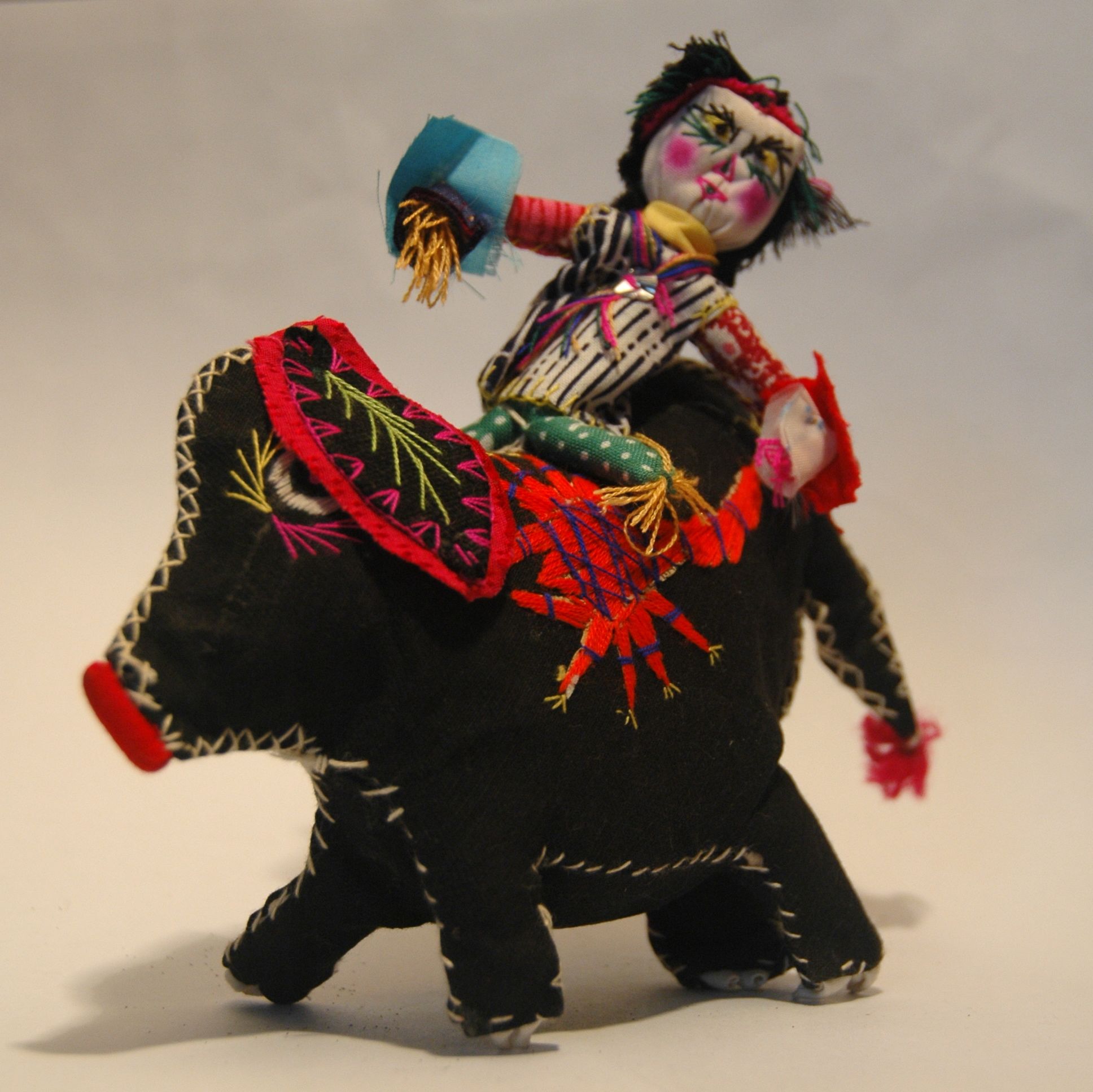 Cloth toys are popular items made by mothers for their children in rural China. They are made of everyday object; leftover cloth, cardboard, decorated with bold embroidery giving an animated life to the toy. The cloth toy in this part of Shaan Xi area is noted for the head being flat and changing to a 3 dimensional body.
