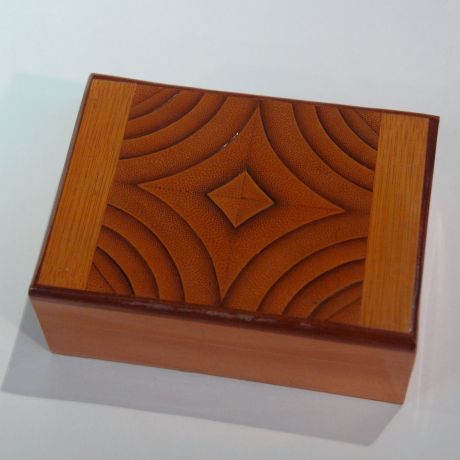 This box is entirely made out of bamboo, even using the natural cross section of the bamboo to create this pattern.