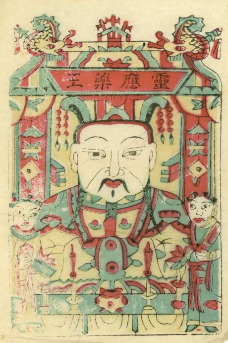 A wood block print of the lord of medicine Sun Si Miao, he was a doctor and Taoist priest of the Tang Dynasty. He is said to live to 140 years old. However, when he was sickly child, the family used up all their saving to treat his sickness. Being a very gifted child, he studied all forms of medicine, he dedicated his life to save as many people as he can and refused to become a doctor for the court. He has made a huge contribution to the Chinese medicine; not only did he wrote the “Thousand Golden Prescriptions”, a complete medical ethics, started gynaecology and pediatrics in Chinese medicine and more. This is a new year print that would be seen in Chinese medicine clinic.