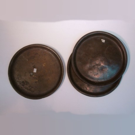 This is a set of bronze plate which is believed to be used for food offering to the gods.  The Chinese uses ceramic for dinnerware, it is uncommon to use food using bronze or metal ware (well, now we have cast iron casserole, stainless steel bowls, enamel dishes, etc) .