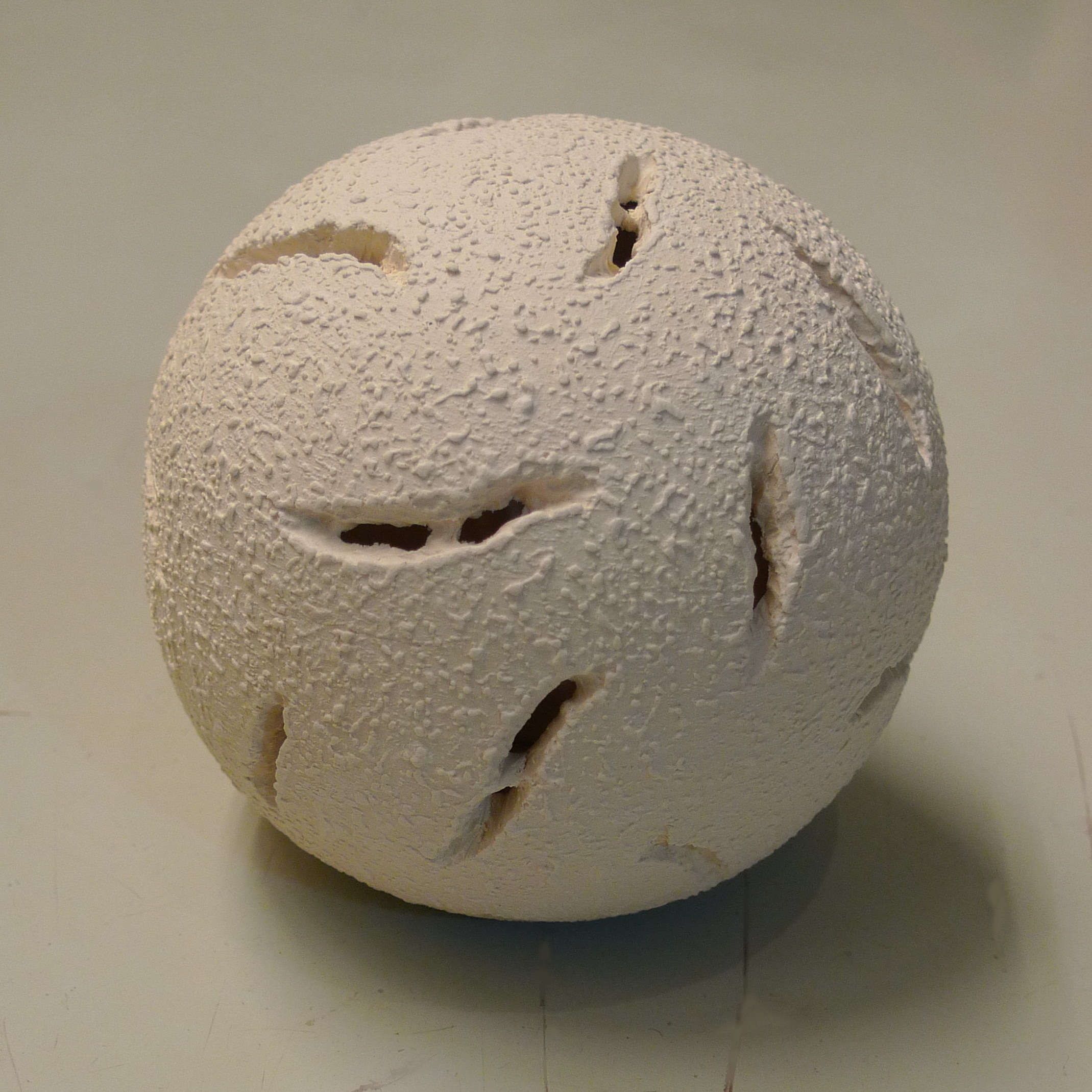 White stoneware , unglazed, texturized with slip.
