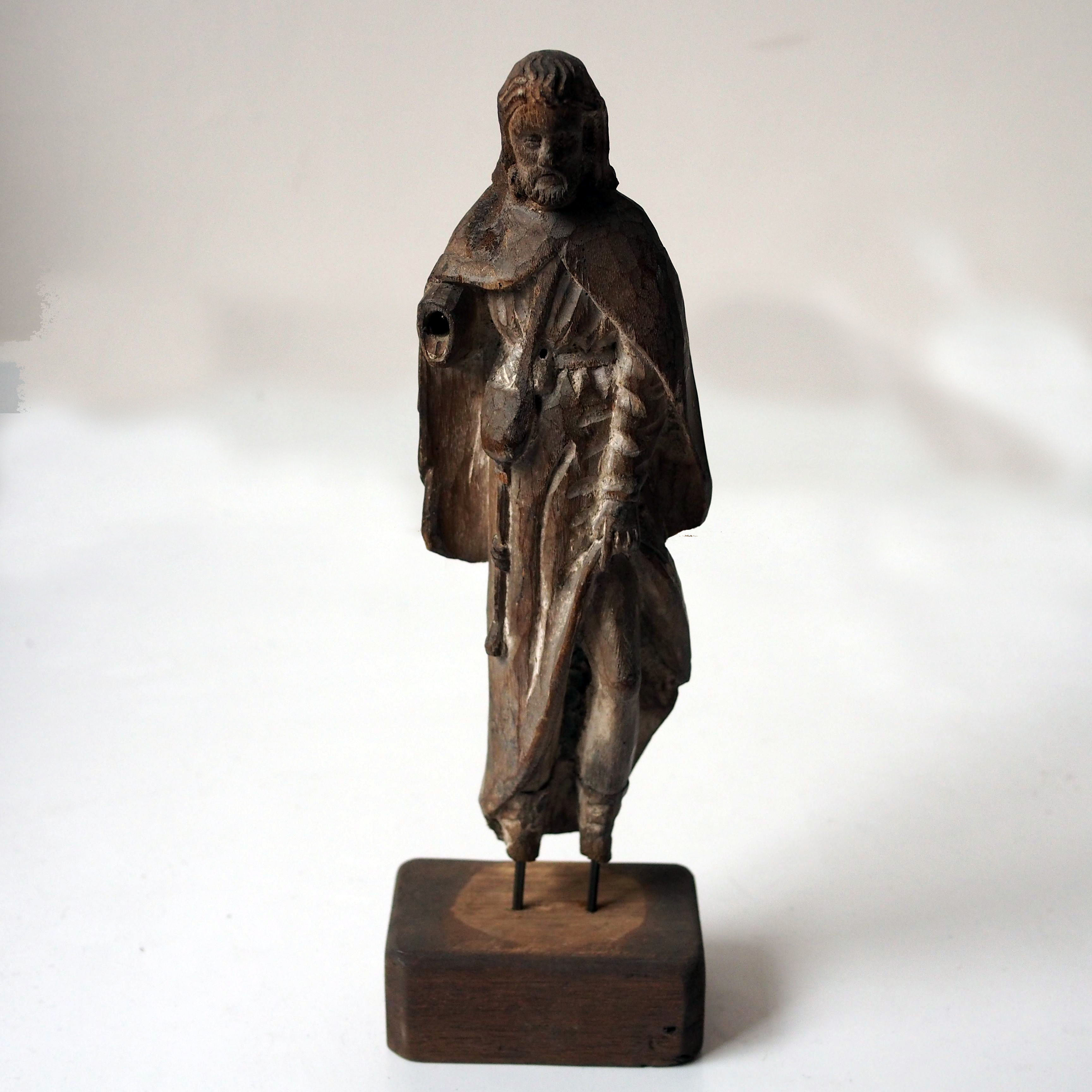In this figurine, Jesus is lifting up his garment and revealing his left leg, would anyone know which part of the scripture does this fit into?