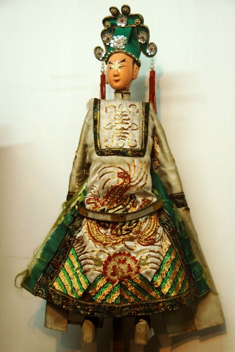 This is a shadow puppet from the province of Luo Shan. The written history of shadow puppet in China dated back over 1000 years and spread all over the country, slowly each region has their own characteristic, in terms of the puppet, its control and of course the singing (as each area has a different dialect). 450 year ago in Ming dynasty shadow puppet theatre arrived Luo Shan from Luan Zhou. Unlike the other region that uses donkey skin, Luo Shan’s puppets are with buffalo skin. Each puppet are controlled by 3 bamboo rods and cast over a white cloth screen of 1.8x1m. The puppet theatre group would consist of 8 people (3 puppeteers), the puppet “cast” are huge (300 odd heads to match with 80 odd bodies), apart from characters there are also sets of mountain, forest, vehicles, animals, furniture, etc!