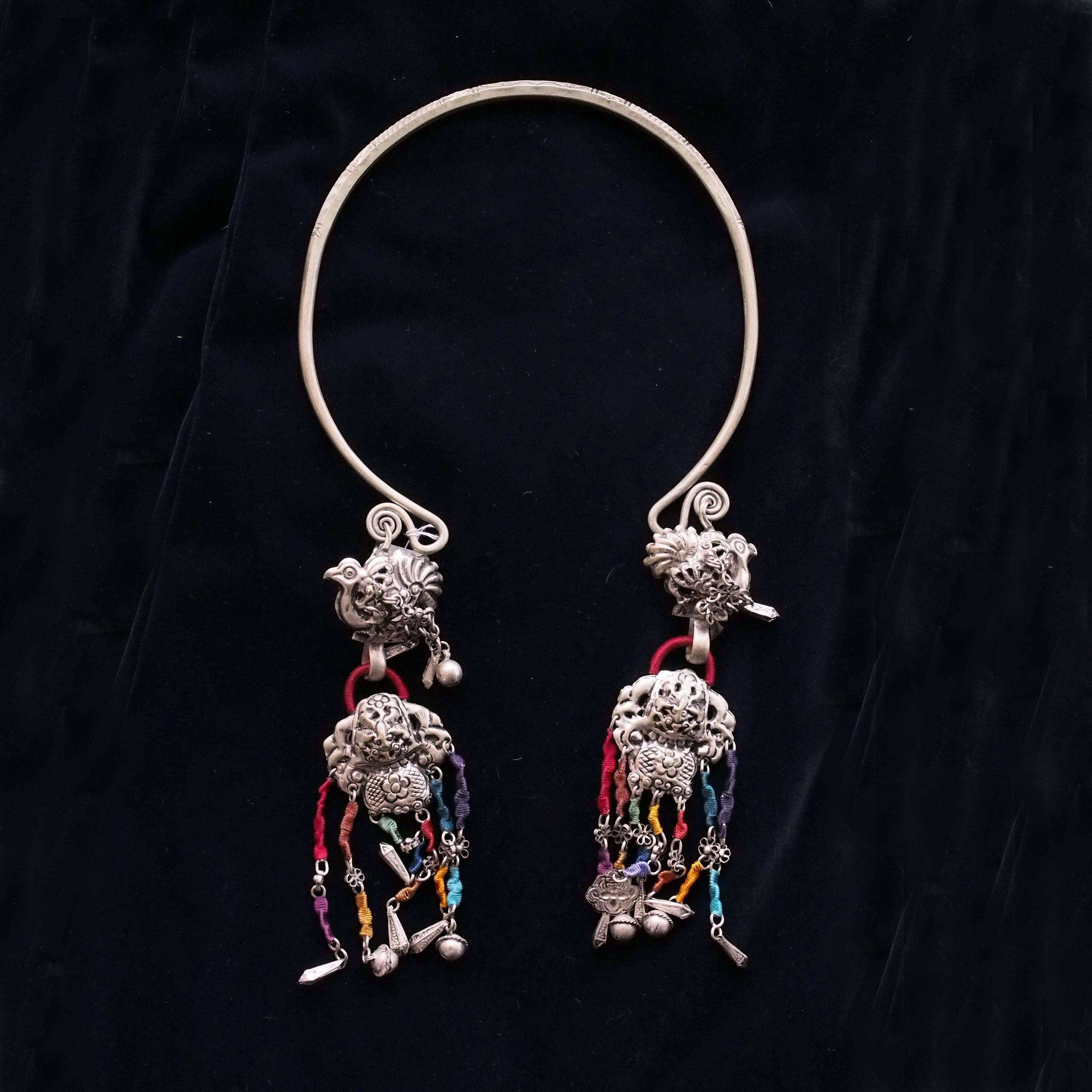 On this patchwork there are flowers, butterfly, fish, birds and dragons. The Miao believes that creatures are interchangeable; a man can become a dragon and vice versa, fish butterfly, flowers and bird can also turn into dragon. Recorded in one of the ancient songs, the butterfly has 12 sons, they had a fight and the water dragon was chased away. He escaped through the waterways and into the ocean, then he realised he has forgotten to bring his money! The fish surrounded his and offered him the money and he was able to become the king of the ocean. There used to be a lot of these ancient songs which get passed down by mouth through generations, sadly only 12 songs were left.