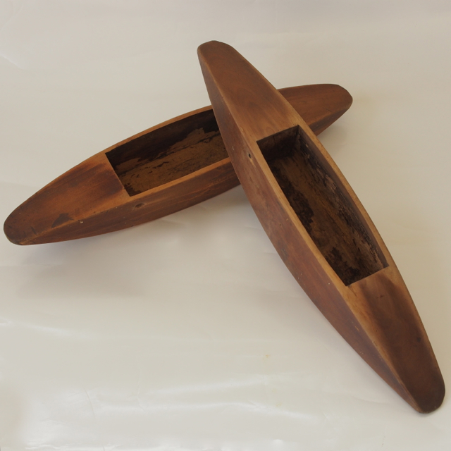 These are a pair of wooden shuttles for the hand loom.