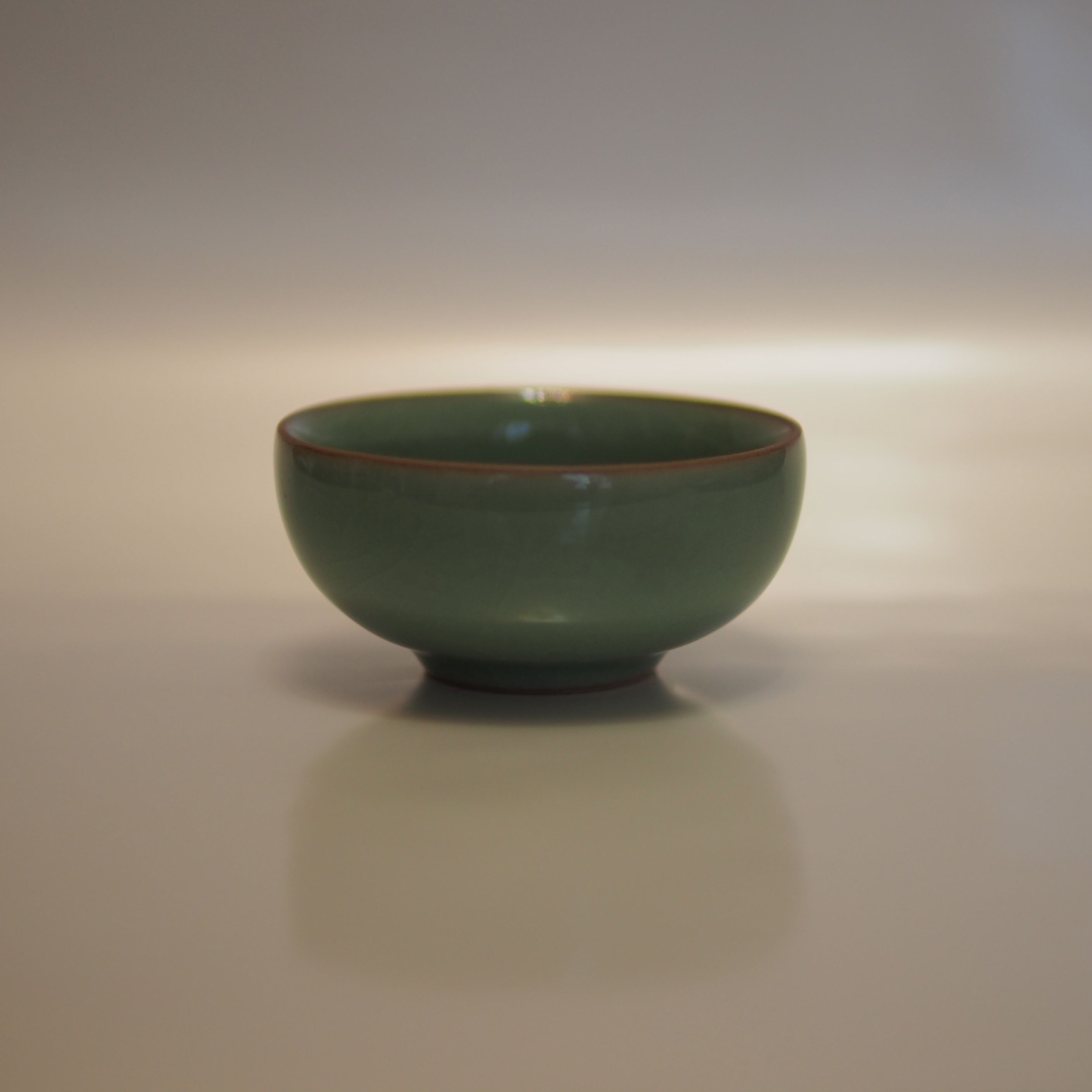 A modern day Jun ware cup. Jun ware is a type of celadon which dated back to the Tang dynasty and its popularity goes from the Sung dynasty all the way to the Qing dynasty. Its typical glaze has a spectrum of colour; rose purple, begonia red, aubergine purple, rooster blood red, grape purple, cinnabar red, spring onion green. Within these colours, there is a complexity of colours within.