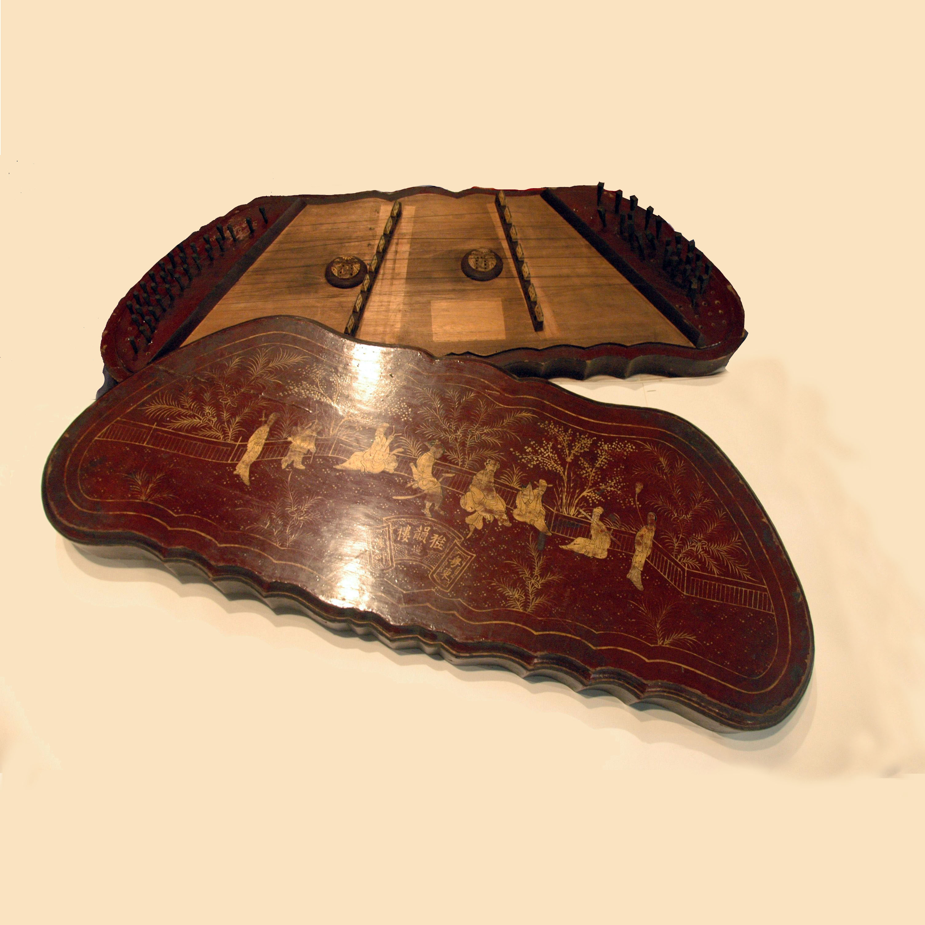 A delicate embroidery of flowers with gold threads on a fine piece of silk. An example of the school of Guangdong embroidery where different thread material is being used, gold, silver, horse hair and even threads made from peacock’s feather.