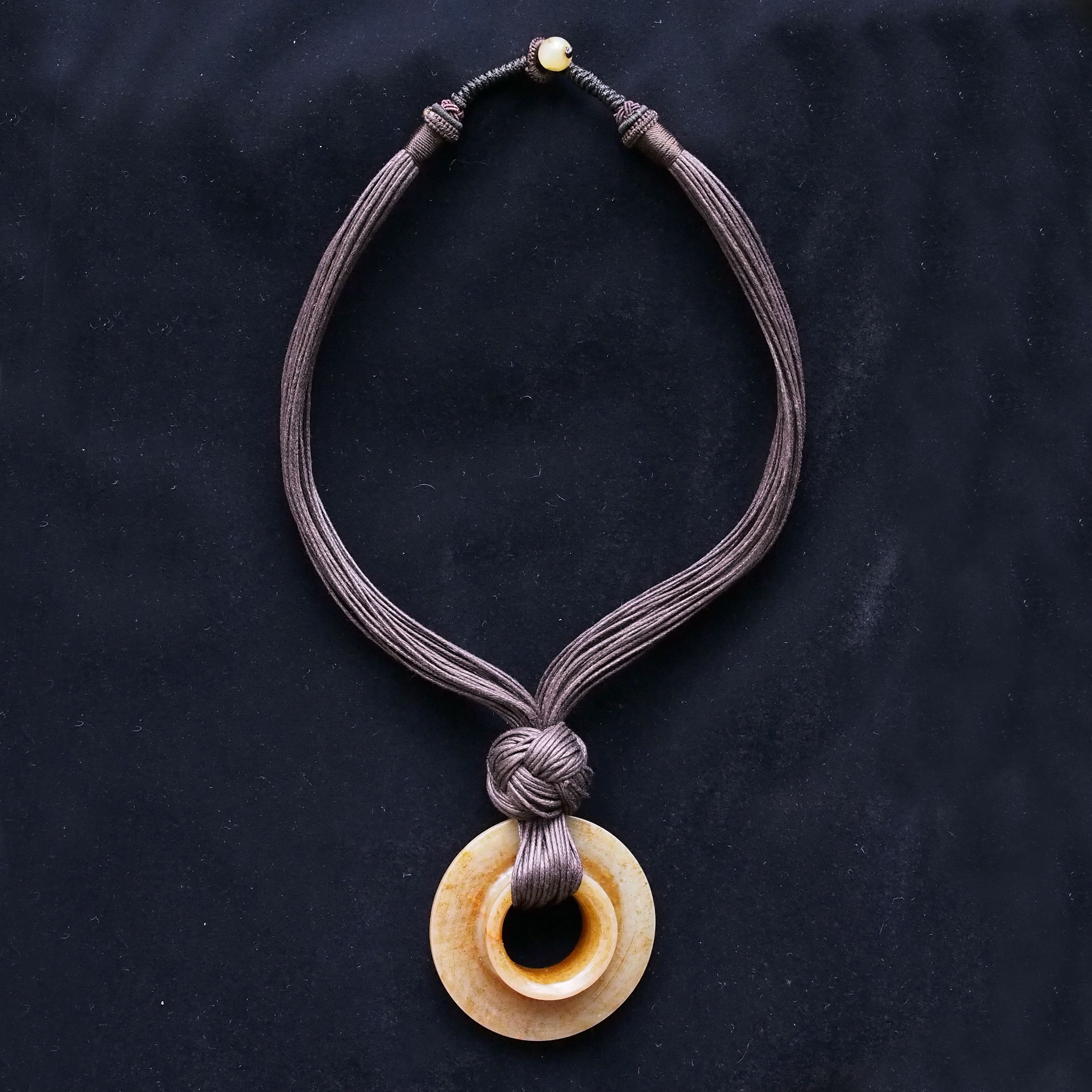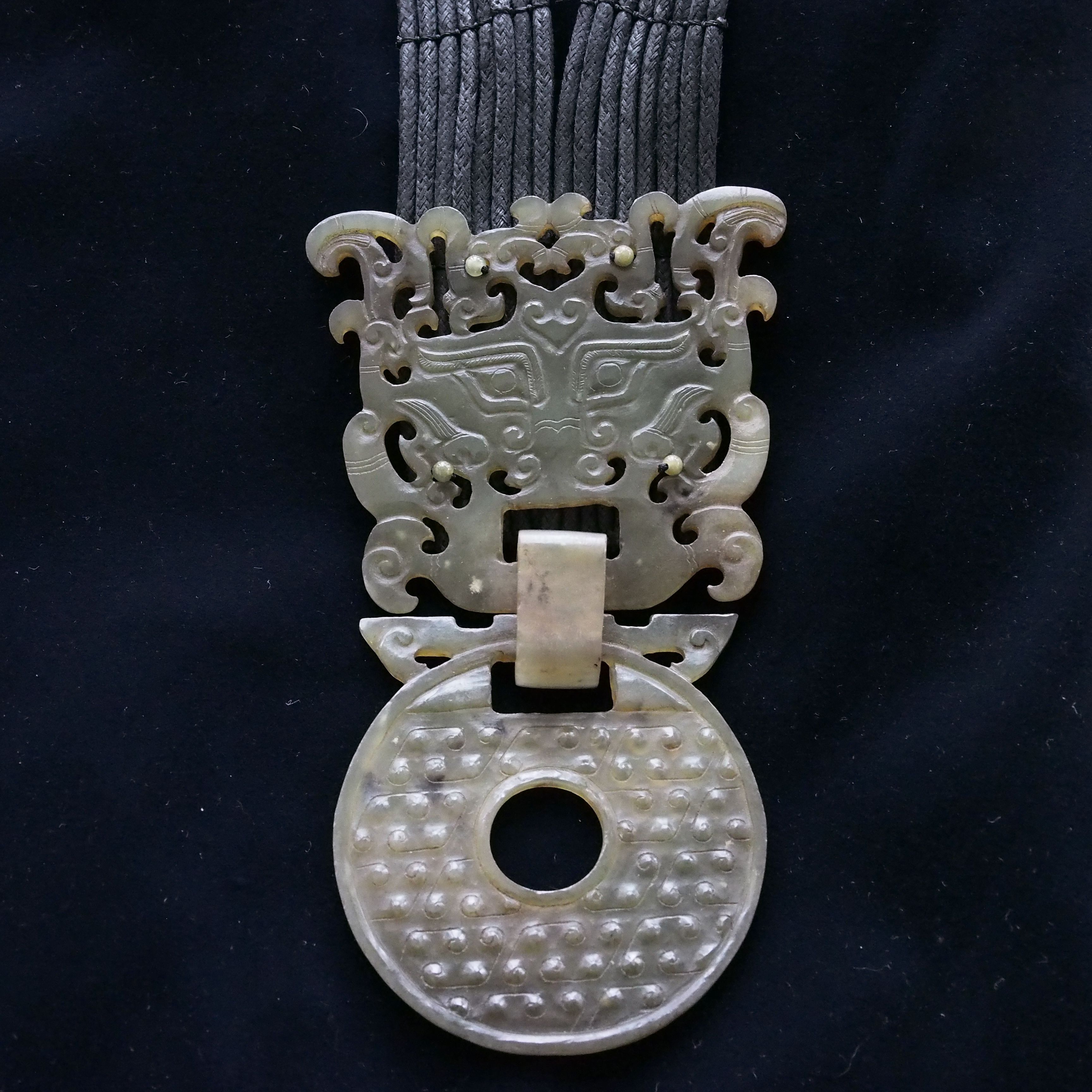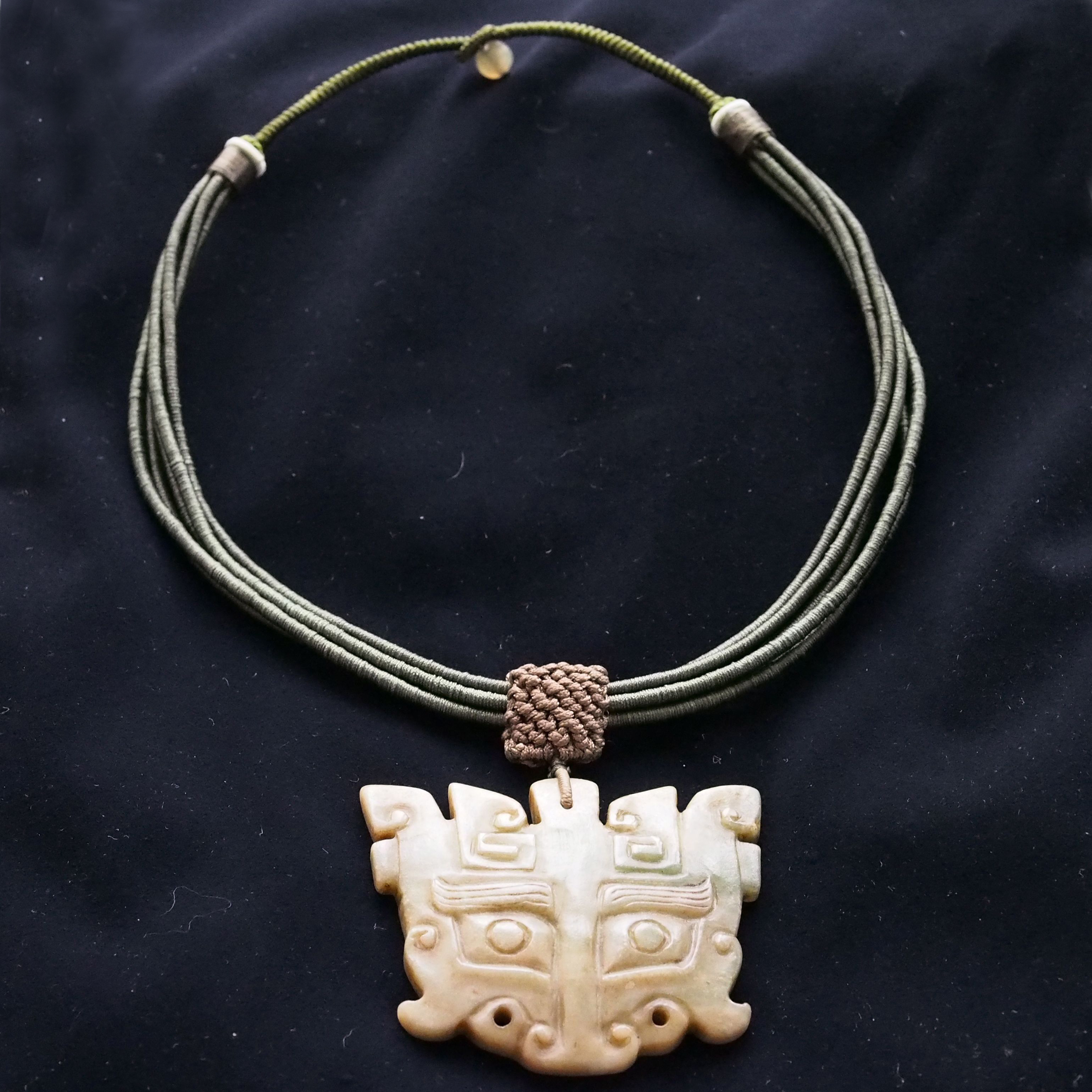 A beautiful jade carving pendant of a Tao Tie with a yu bi hanging from his mouth.