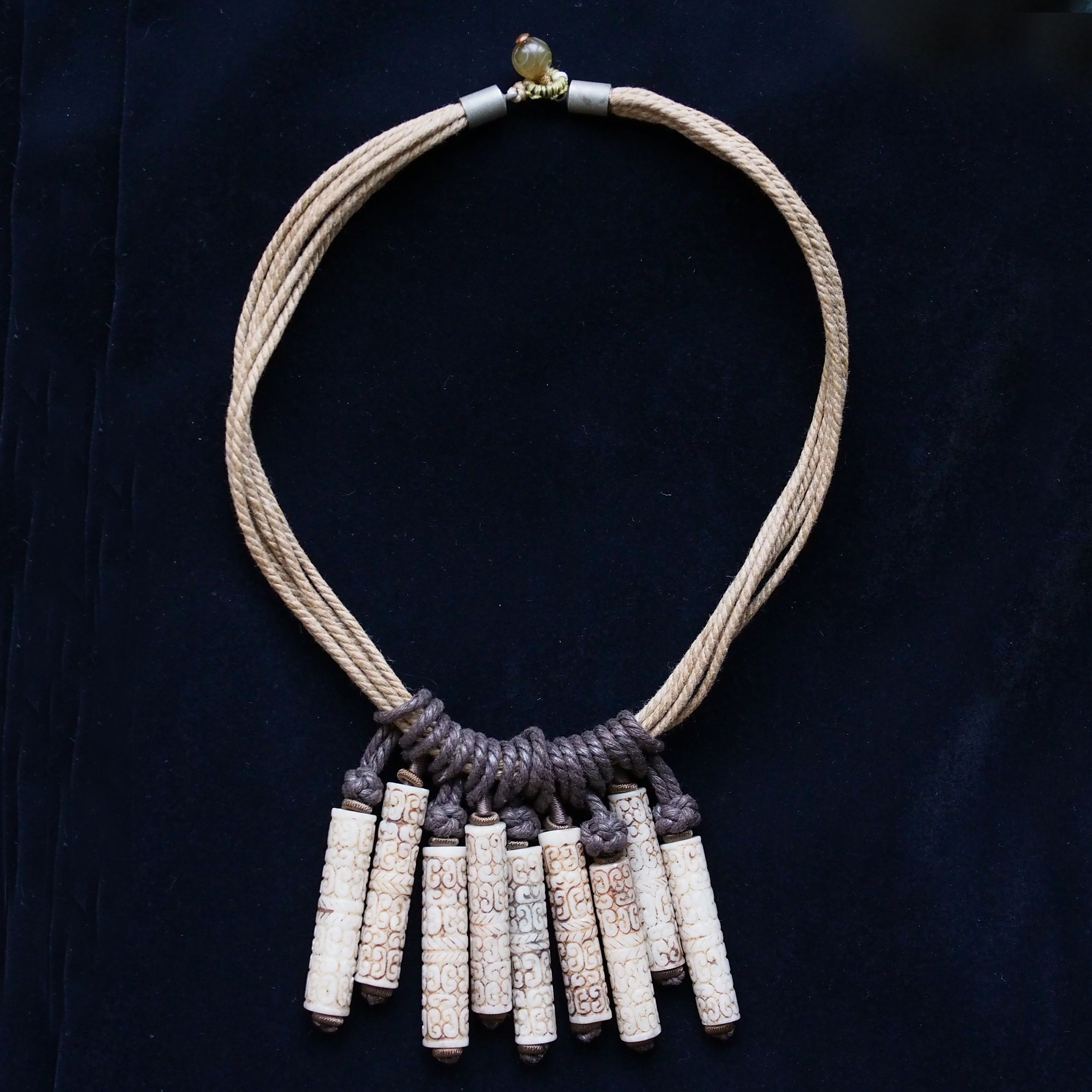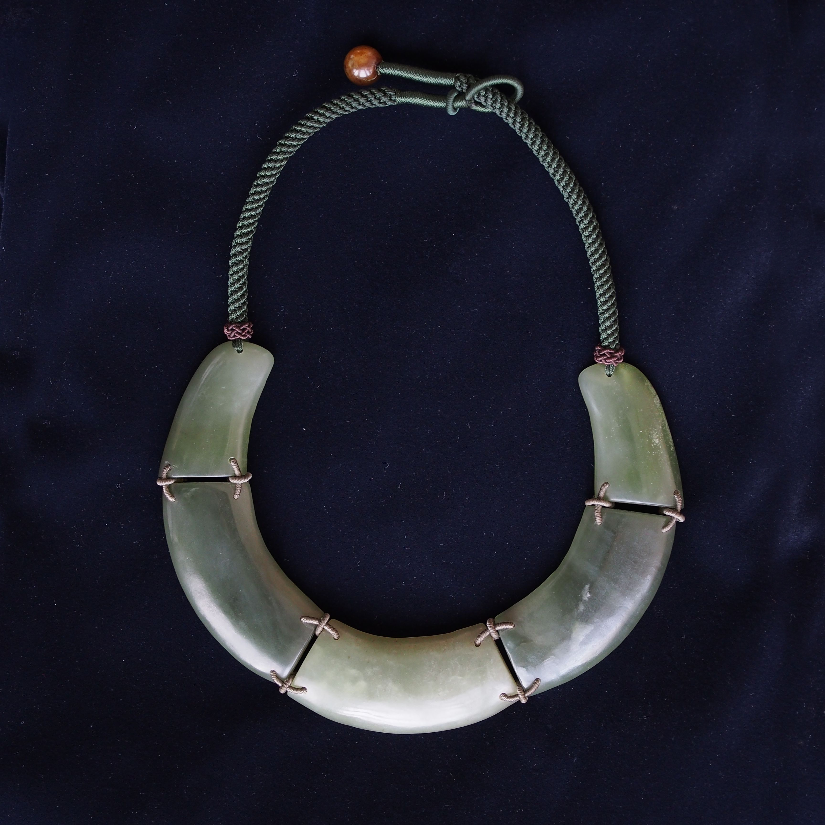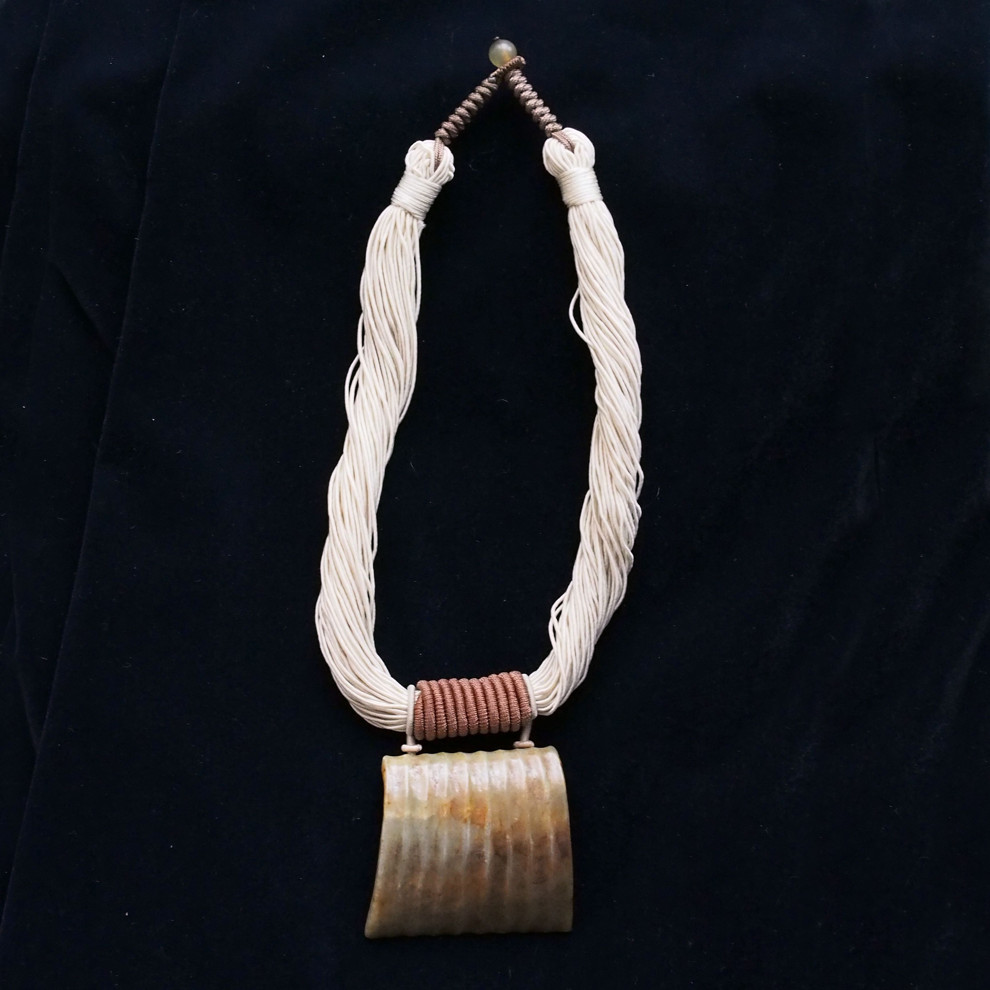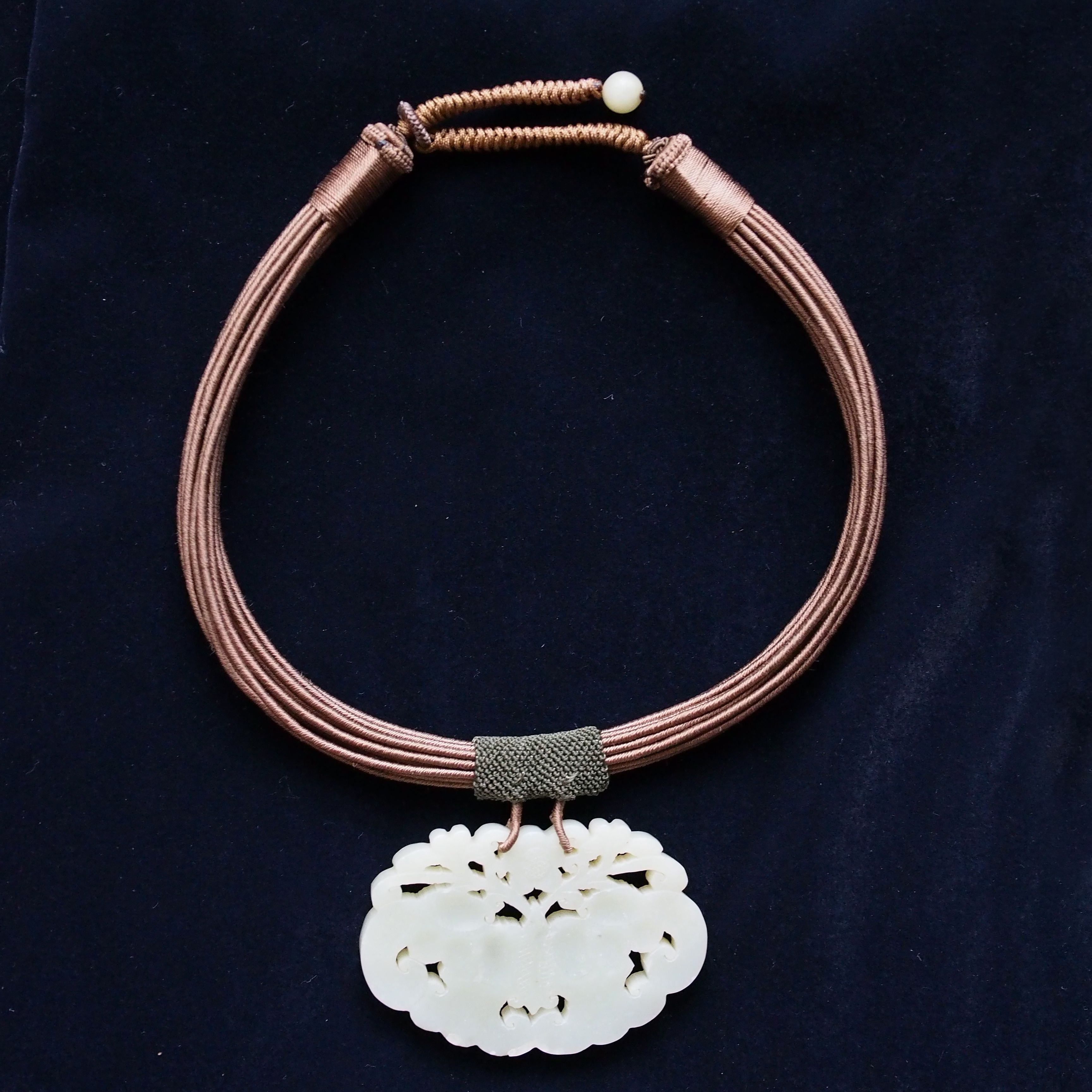 A beautiful jade carving pendant of a Tao Tie with a yu bi hanging from his mouth.