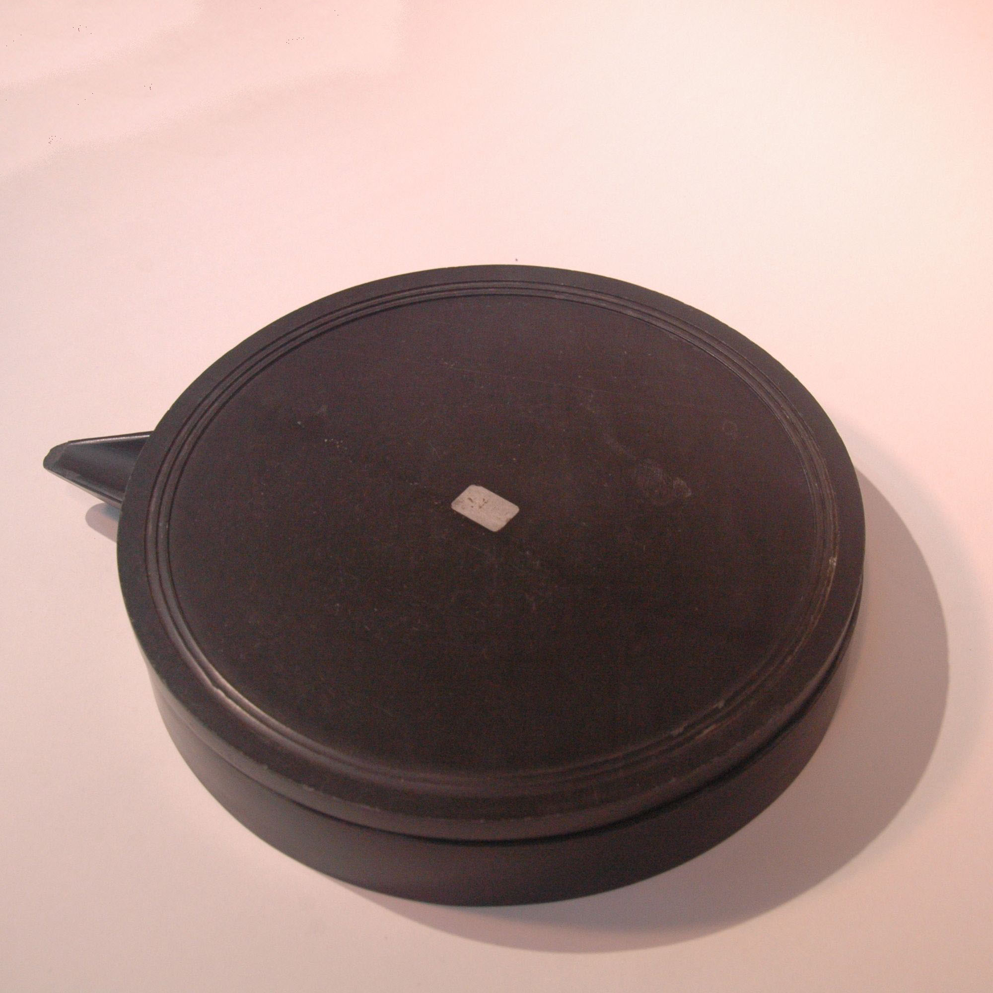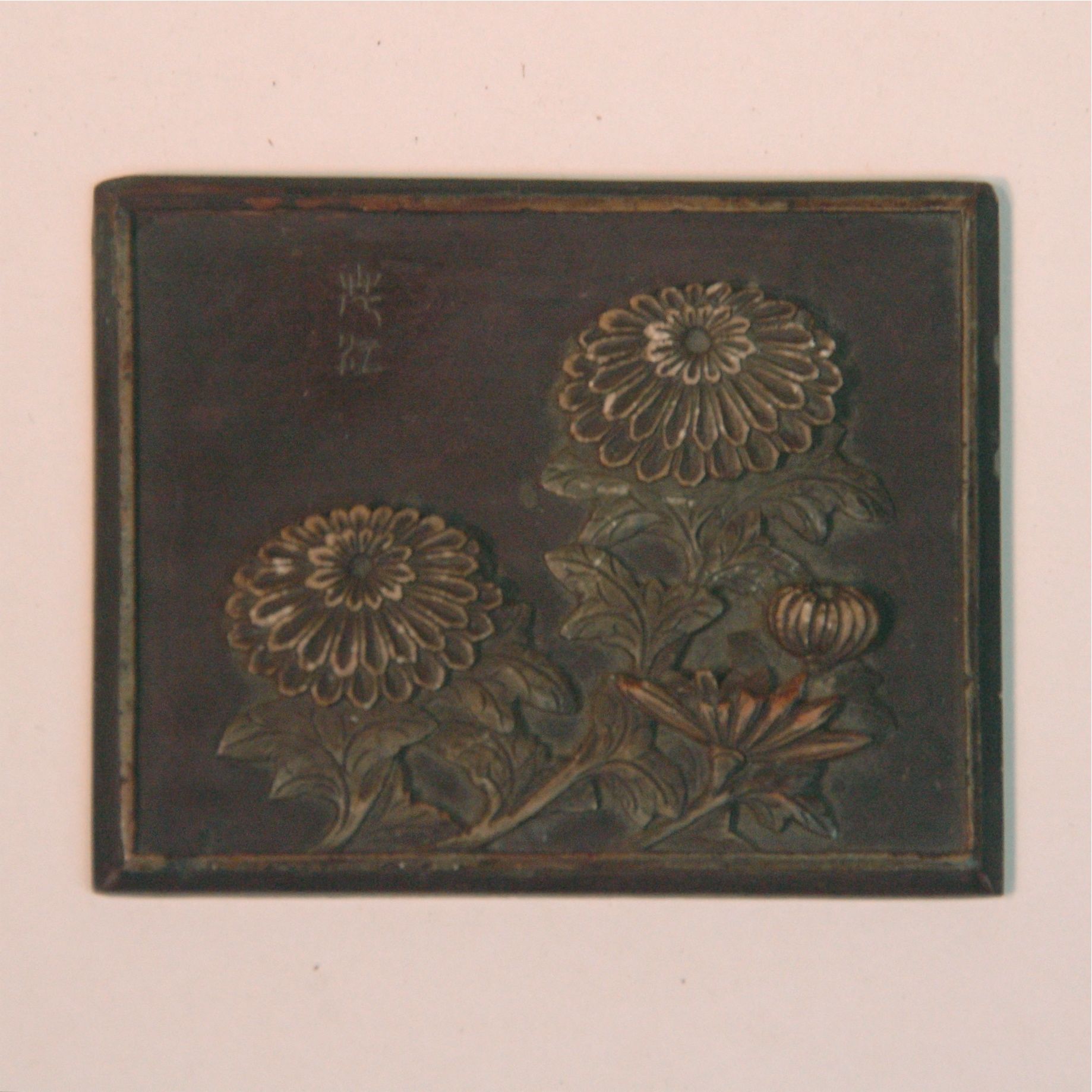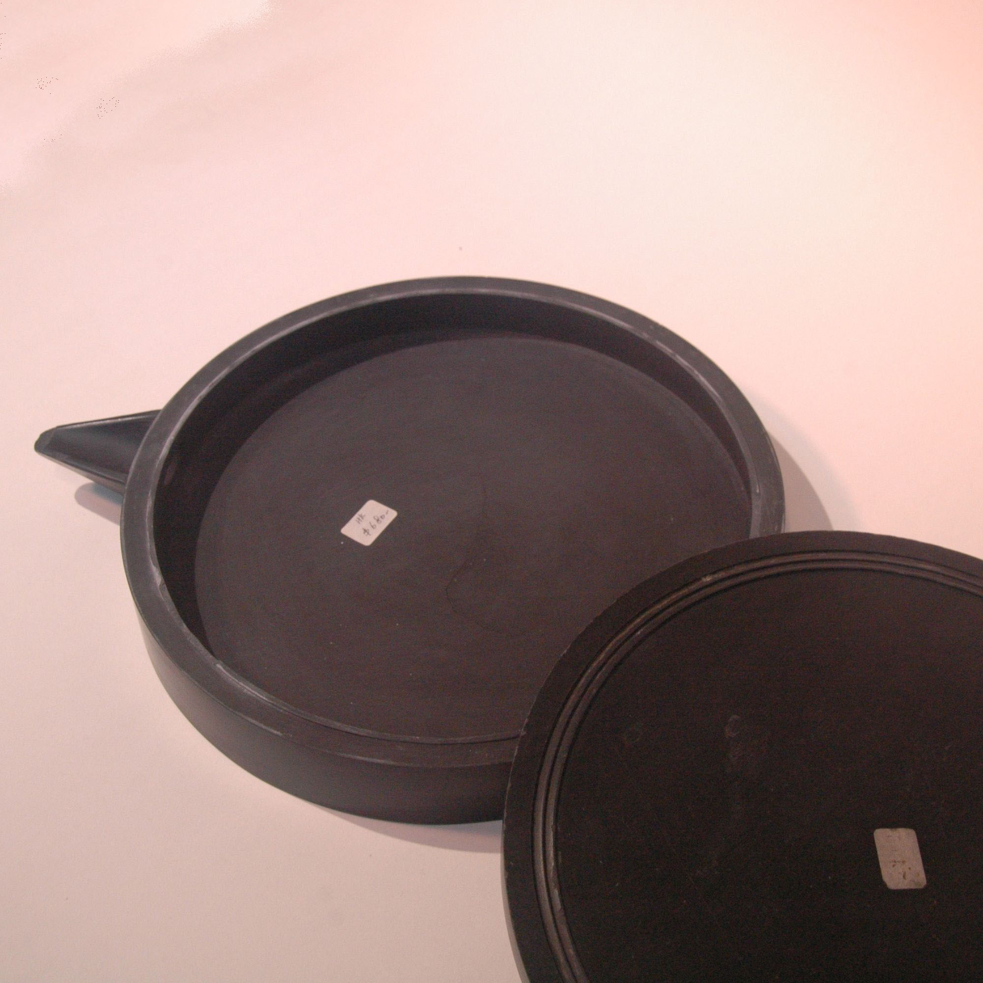 A wooden box that contain a piece of stone. A stone that is used for grinding the ink bar – an inkstone.
