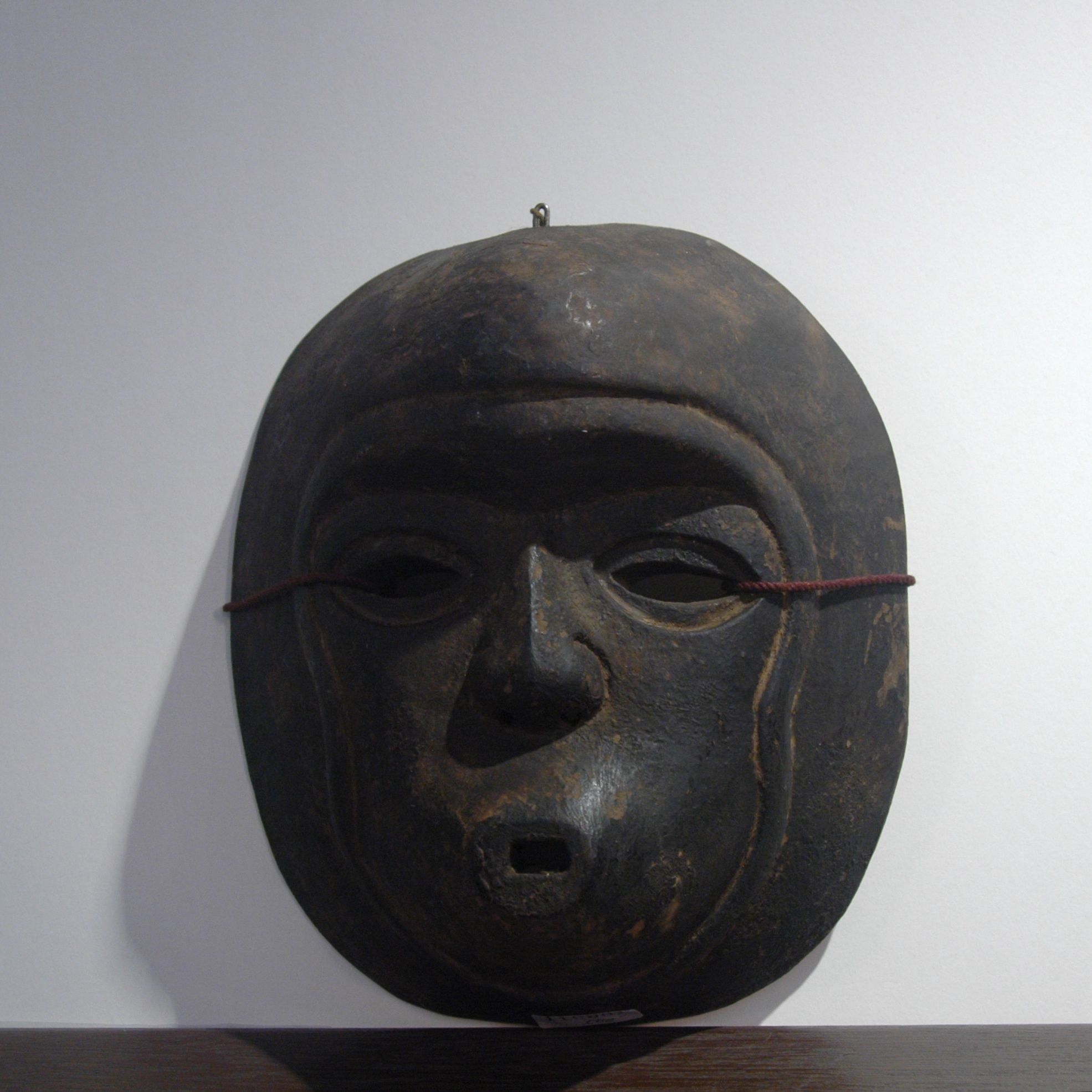 This is a mask used in the Talchum mask dance in Korea; the dances were in the past an outlet for letting out the frustration felt by the commoners towards the Yangban ruling class who were following the Confucian doctrine.  The stories of the dance often mock the ruling class by ridiculing monks, the upper class and shamens.  The dance would be performed at festivals, these dynamic dances are received by an equally energetic audience who would join in the dance at the finale.  This is a monkey (Wonsungi) mask made of paper and fur; in the dance the monkey usually plays the role of mimicking humans.