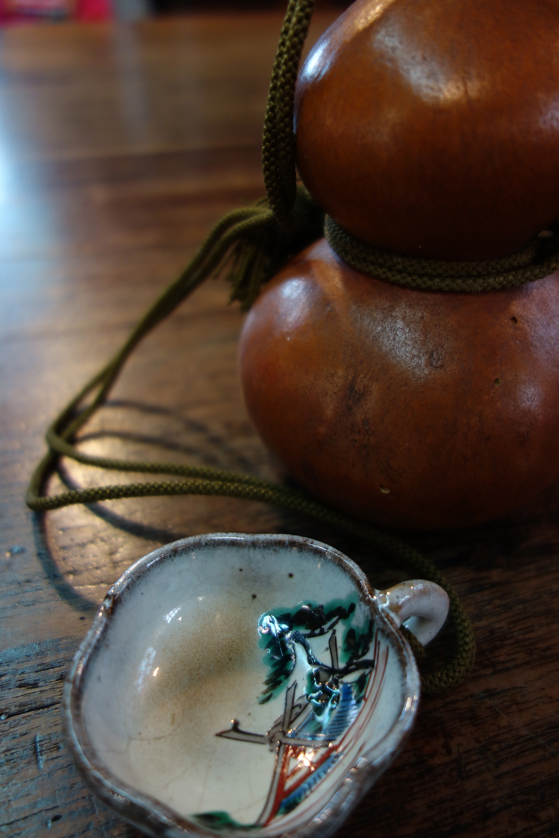 For the Asian Folkcraft Event, we have from Soil a Sake hyotan container with its own cup! A more poetic version of the whisky flask.
