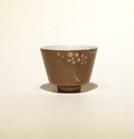 This is a pair of lids made with coconut shell and inlay with pewter, they would have been matched with a coconut shell cups but unfortunately the cups are not absent. Coconut as a material for tea ware has been used since the Ming dynasty, mainly as an exotic gift to the imperial court from the Hai Nam area. See also our previous post of the Coconut Teapot.