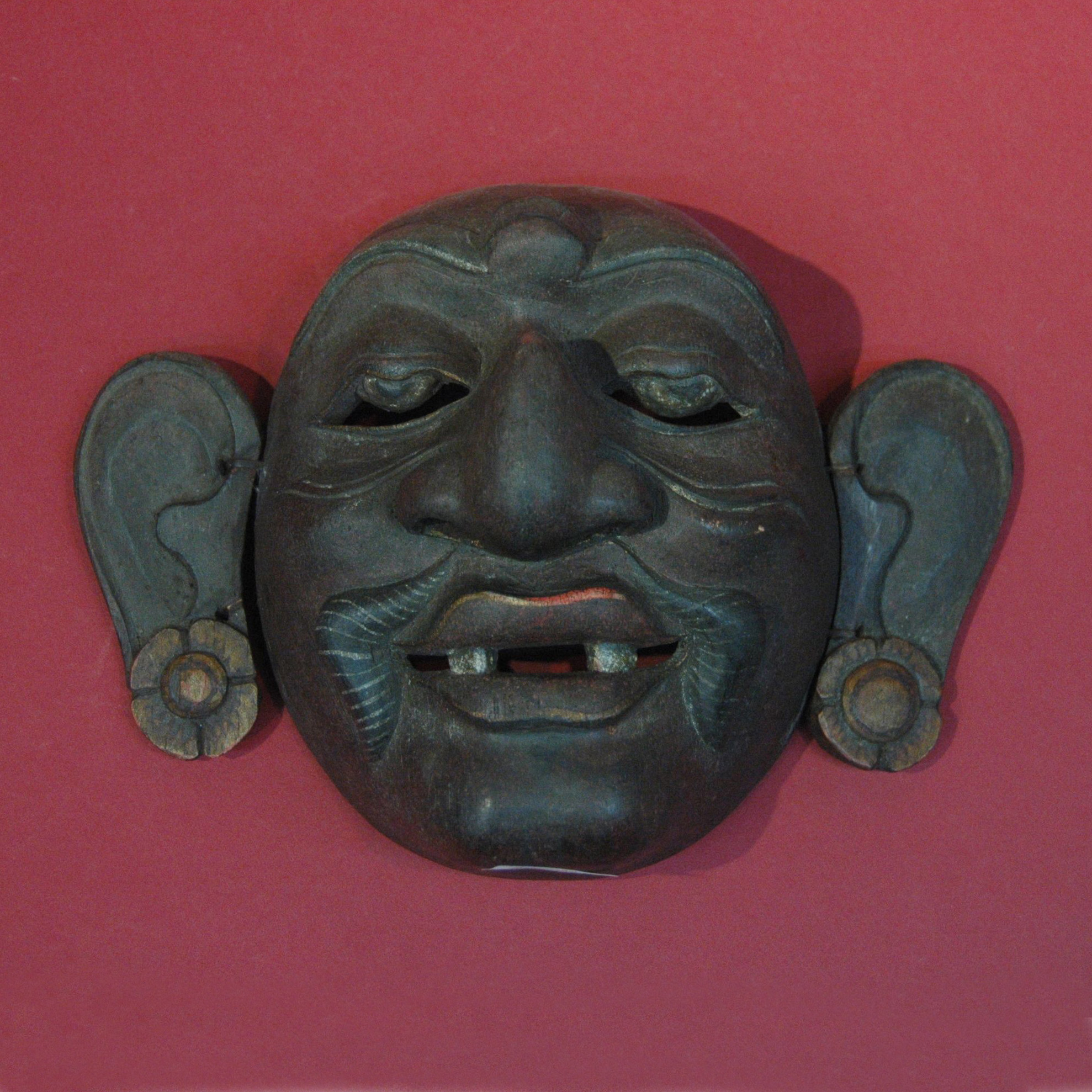 This is the Java mask for the Ramayana epic character Sugriwa , the king of the monkeys. The monkey kingdomm Kishkindha was ruled by Bali, Sugriwa’s brother, one day a demon came to challenge a fight with Bali. Seeing blood from the demon’s mouth and that Bali not returning, Sugriwa thought his brother has died and took over the kingdom. Bali however returned unharmed and suspected Sugriwa has betrayed him, took Sugriwa’s wife Tara and banished him from the kingdom. During his exile, Sugriwa made friends with Rama whose wife Sita was captured by the demon Rakshasas. Sugriwa and Rama made a deal to help each other, Sugriwa to take revenge of Bali and Rama to save his wife. Sugriwa challenged Bali and a fight started, midway Sugriwa’s counsellor Hanuman to place Garland of flower around Sugriwa’s neck. Rama took the chance and shoot Bali at the heart. After Bali’s death, Sugriwa took over the kingdom and forgot about the promise with Rama. Rama’s brother Lakshmana was upset and was planned to destroy the monkey kingdom and to kill Sugriwa. Luckily Tara reconciled Rama and Sugriwa. Hanuman found out the location of Sita and with joint forces Sita was free.