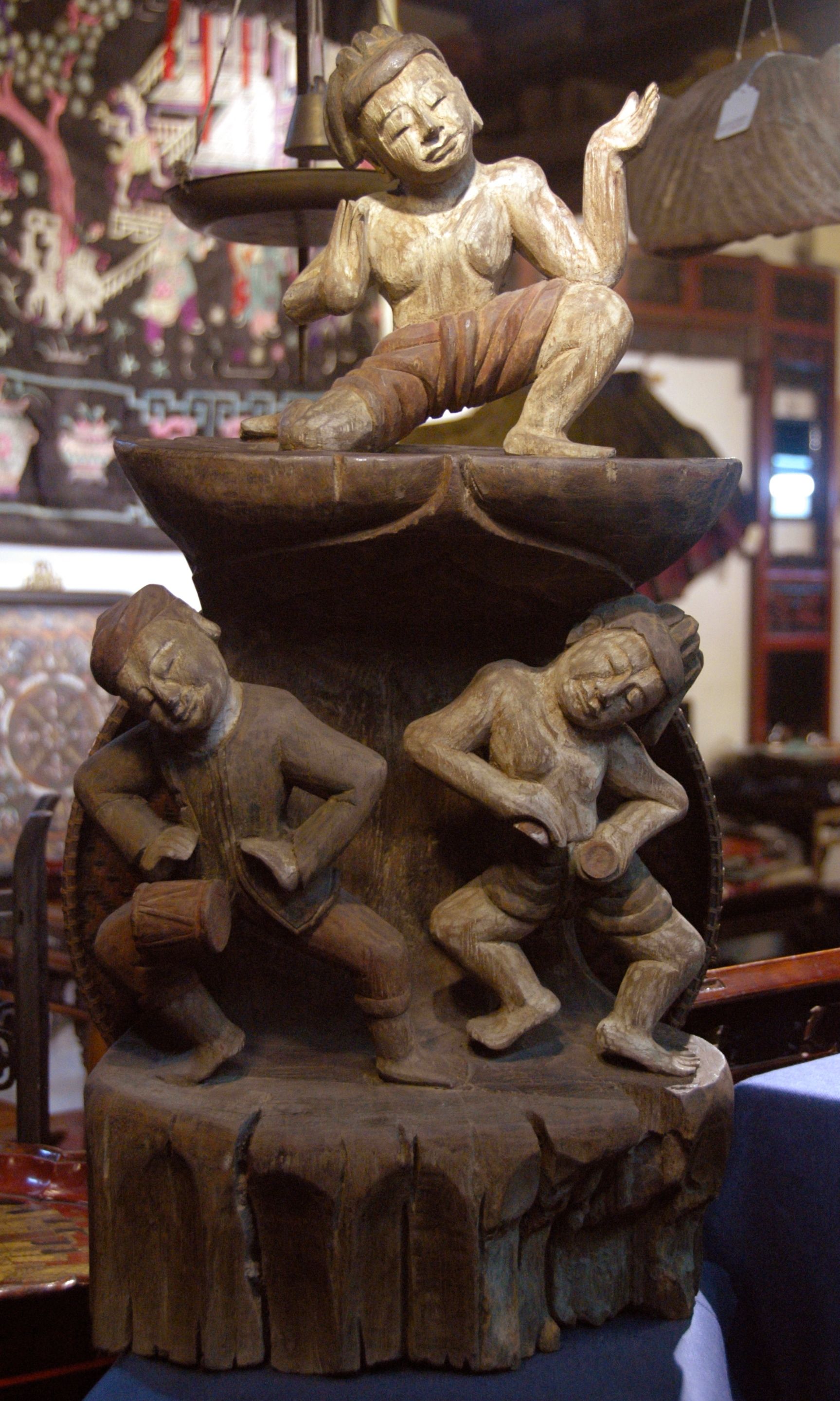 In the wood carving, on the right is Mu Gui Ying on the horse with Yang Wenguang on the horse on the left, the other female of the family were out to see them off.